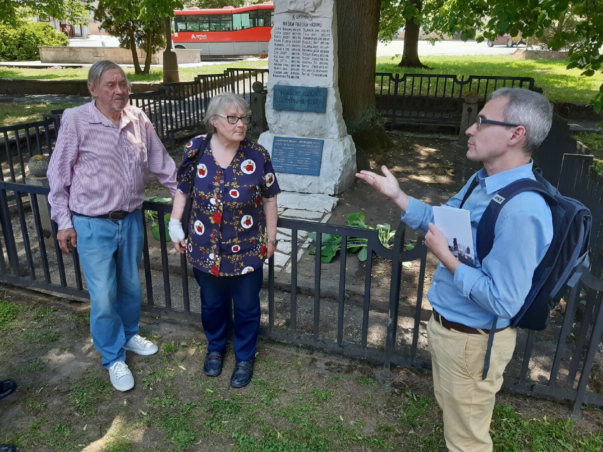 Setkání proběhla u pomníků se jmény židovských spoluobčanů, kteří byli zavražděni během holocaustu.